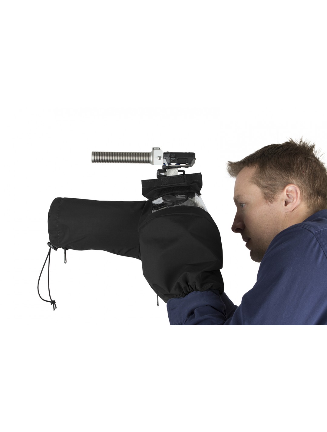 The DSLR Rain Slicker has sleeves with elastic openings on either side of the case provide full access to camera controls while keeping your camera and hands dry. There's a double-layer Velcro-sealed access panel along the top of the case for attaching flashes and lights and clear vinyl windows provide easy viewing of display screens and lens points.