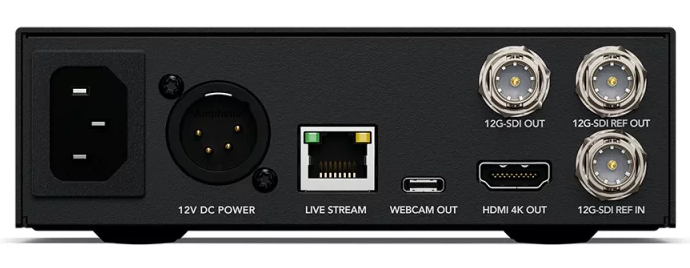 - SDI-Audio-Ausgänge: 16 eingebettete Audiokanäle am 12G-SDI Ref Out, 2 eingebettete Audiokanäle am 12G-SDI Out