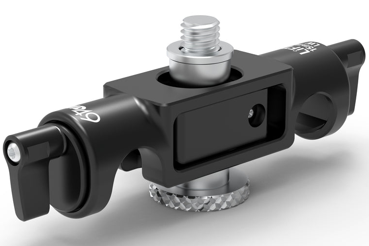 Die LiFT-Objektivhalterung (15 mm LW) wird an 15-mm-Stäben mit geringem Abstand (60 mm Abstand von Mitte zu Mitte) befestigt und unterstützt Objektive mit einem 3/8-16- oder 1/4-20-Fuß. Dank der verstellbaren Mittelsäule kann die Halterung die meisten Standard-Objektivfußhöhen erreichen.