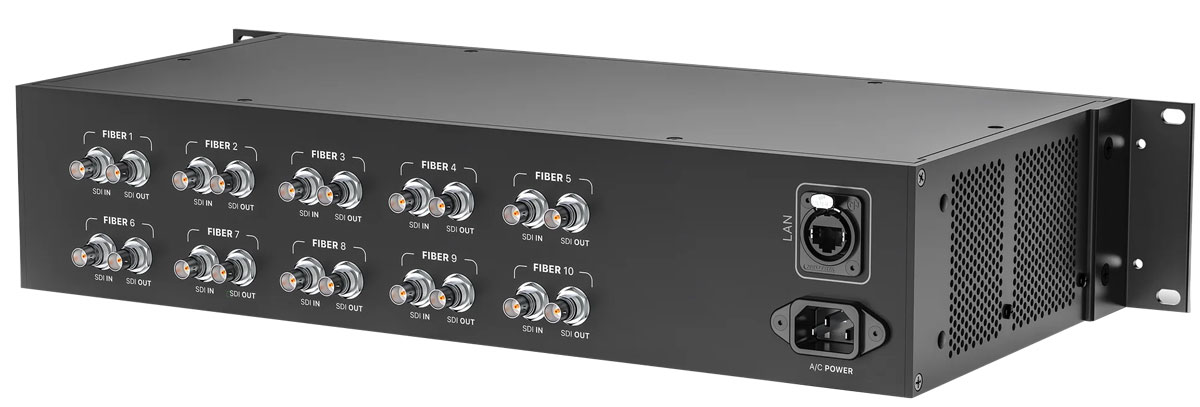 - E/A-Anschlüsse: 10x SDI In, 10x SDI Out, 1x Neutrik opticalCON MTP® 12, 1x LAN 1G , AC Power