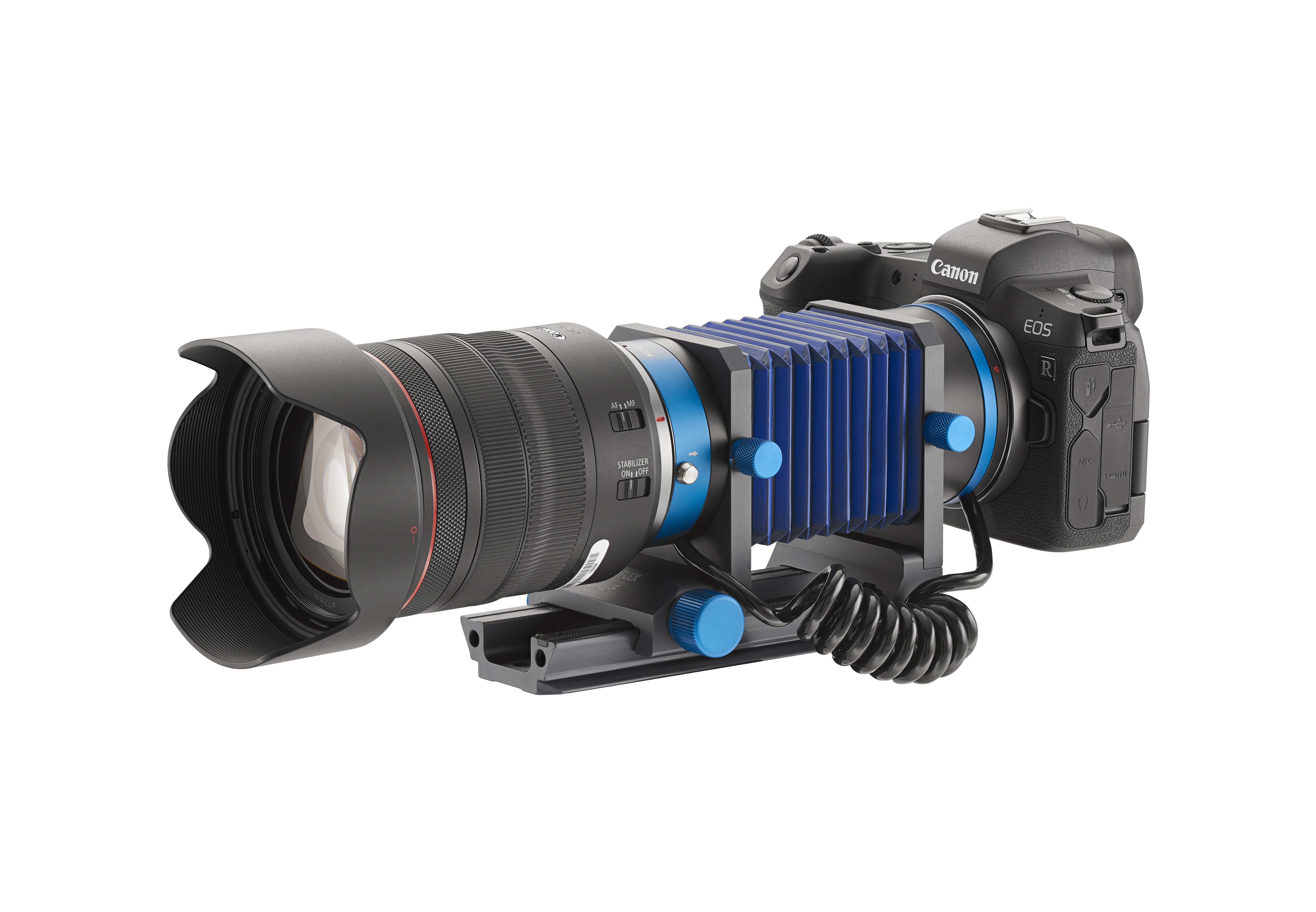 Der klassische Weg zur Makro- und Mikrofotografie führt über das Balgengerät. Das automatische Balgengerät BAL-EOSR wurde speziell für die Verwendung mit spiegellosen Canon EOS-R Kameras und Objektiven entwickelt und überträgt alle Funktionen zwischen Kamera und Objektiv. Passende Objektive können mit einem optionalen Reduzierring sogar in umgekehrter Position auf dem Balgengerät verwendet werden.