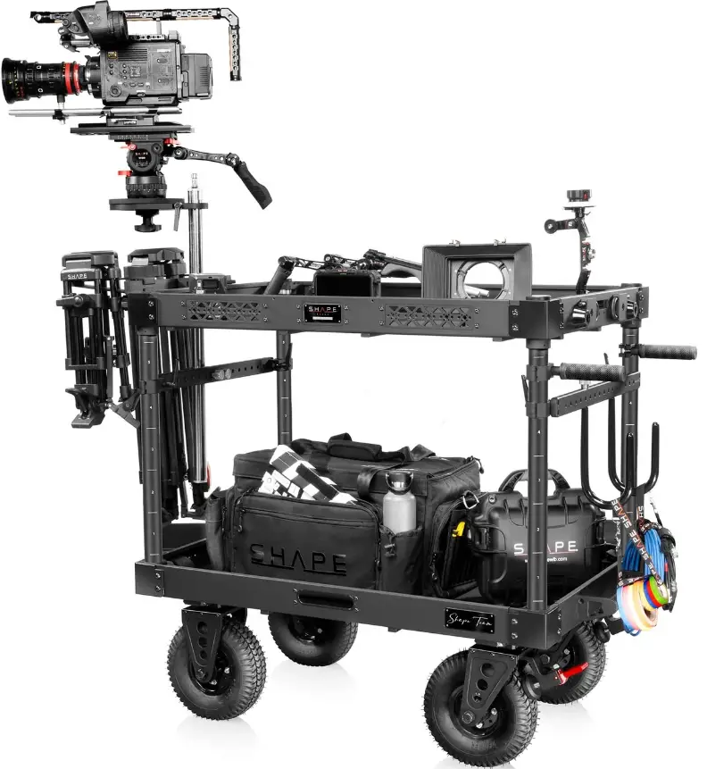 Der SHAPE WAGON 40'' Kamerawagen wurde für die Bequemlichkeit von professionellen Filmemachern, Videofilmern, Fotografen, Kameraassistenten oder jedem Mitglied einer Film-/TV-Crew entwickelt. Sein Design ermöglicht mehrere verschiedene Anwendungen. Dieser reisefreundliche Wagen macht den Transport zu verschiedenen Orten sehr einfach.