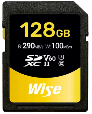 Die kleinen, aber leistungsstarken Wise SDXC UHS-II V60-Editionen sind nahtlos mit professionellen Camcordern, spiegellosen und Kinokameras kompatibel. Solange sie einen SD-Steckplatz hat, funktioniert sie.