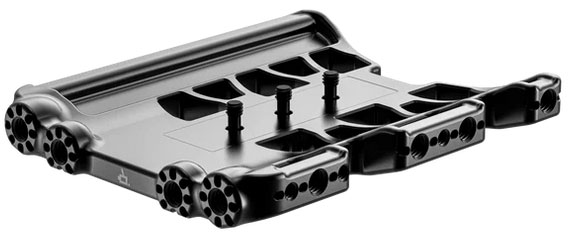Die für die Blackmagic URSA Cine 12K/17K entworfene Deckplatte verfügt über offene Anschlüsse, die den Luftstrom und die Konnektivität betonen. Dieses System wird mit drei 1/4"-20-Schrauben in der Mitte der Kamera sicher an der Oberseite der Kamera befestigt und bietet mehrere 1/4"-20- und 3/8"-16-Befestigungspunkte an der Oberseite und den Seiten der Platte. Der hintere Befestigungspunkt an der Assistentenseite der Kamera ermöglicht einen Befestigungspunkt für den Top Plate Extension Block, während die nach vorne gerichteten 3/8"-16-Befestigungspunkte dem Benutzer ermöglichen, Zubehör wie die Front Dual Rod Clamp zur Befestigung von 15-mm-Stangen für Zubehör wie EVFs oder Objektivmotoren hinzuzufügen. Mit den nach vorne gerichteten 3/8"-16 Befestigungspunkten können Benutzer Zubehör wie Bolt-On Rods oder eine Maxi Rod Light für Objektivmotoren hinzufügen. Diese Top Plate ist mit dem Blackmagic URSA Standardgriff kompatibel.