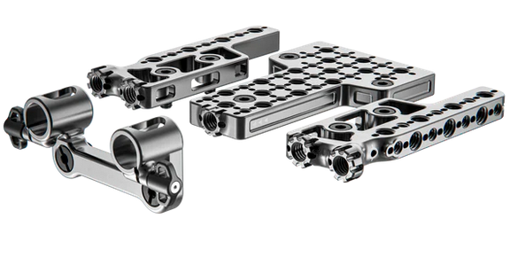 Dieses leichte, anpassungsfähige und modulare, dreiteilige Top Plate System besteht aus einer Center Plate, zwei symmetrischen Links/Rechts-Platten und einer Top Plate Dual Rod Clamp - Front für stangenbasierte Montage.