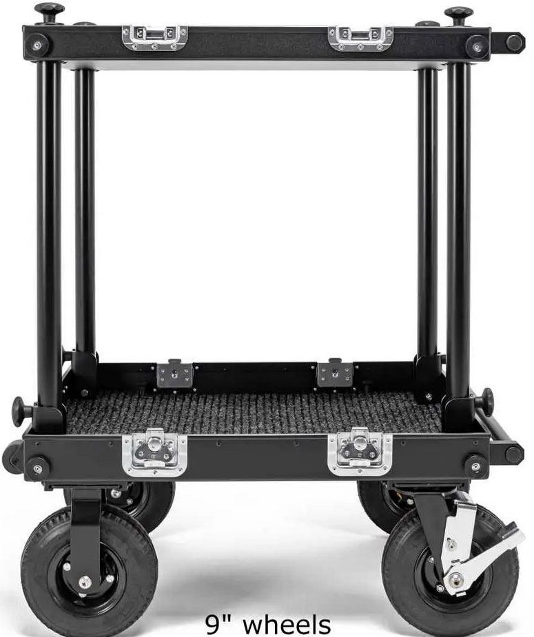 Adicam MINI weighs barely 28.5 kg and allows to transport the equipment even five times heavier. This model has four hand-folded wheels (8″-fi200 mm) which are equipped with sealed bearings. Swivel wheels have been enriched with breaks which guarantees more stability in difficult conditions. Each deck has been covered with facing to prevent displacing of the equipment. The cart can be folded to small dimensions suitcase which can be easy carried by most of the cars. Assembly and disassembly takes only 2 minutes and is incredibly effortless. The wide list of the available accessories allows for a configuration by choice.