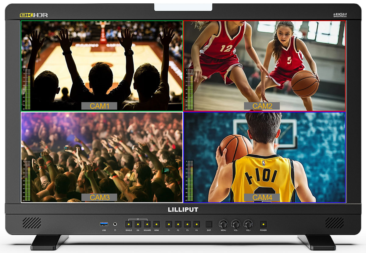 The Lilliput UQ23 is a portable 4K production monitor with a 23.8-inch diagonal, 1200 nits high brightness and 10-bit color depth. The monitor'senhanced user interface consists of a three-level menu and F1-F4 buttons and knobs whose functions can be customized. The Lilliput UQ23 can be controlled remotely via the app. The Quad-Split multiview function allows simultaneous viewing of multiple sources.