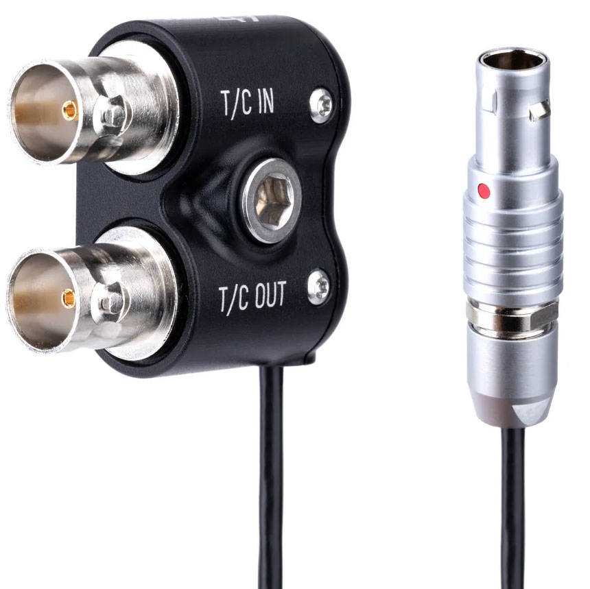 Timecode Splitter is a breakout box for the 0B 5pin timecode LEMO found on ARRI cameras, splitting it into BNC's for T/C IN and T/C OUT.