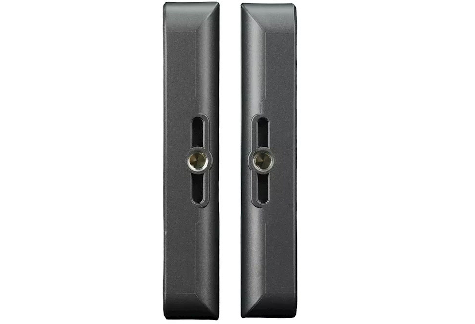 - Mounting Points: Left: 1/4" screw hole - Right: 1/4" screw hole - Bottom: 1/4" screw hole
