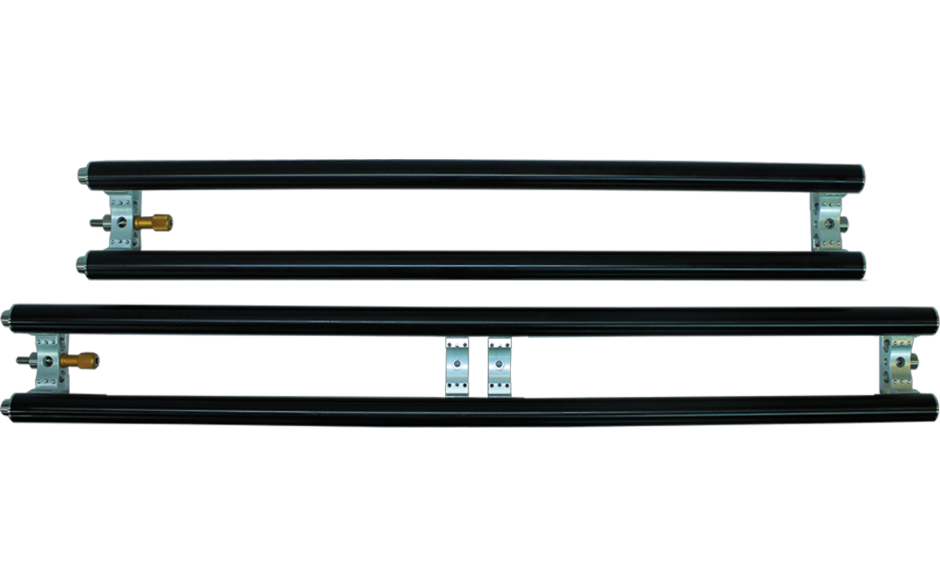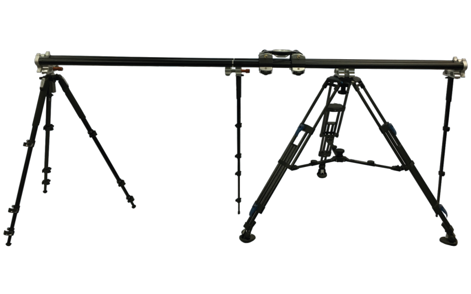 The lightweight roller system is ideal for camera packages up to 15 kg and can be used in both over- and under-sliding configurations. For the central tripod configuration we recommend the use of two additional mono-pods, which are included in the set, to provide additional support at the ends of the 1.2M track. All the sleepers are equipped with a 3/8” location hole for use with 28mm spigots, angle ball joints or 100mm half ball adapters.