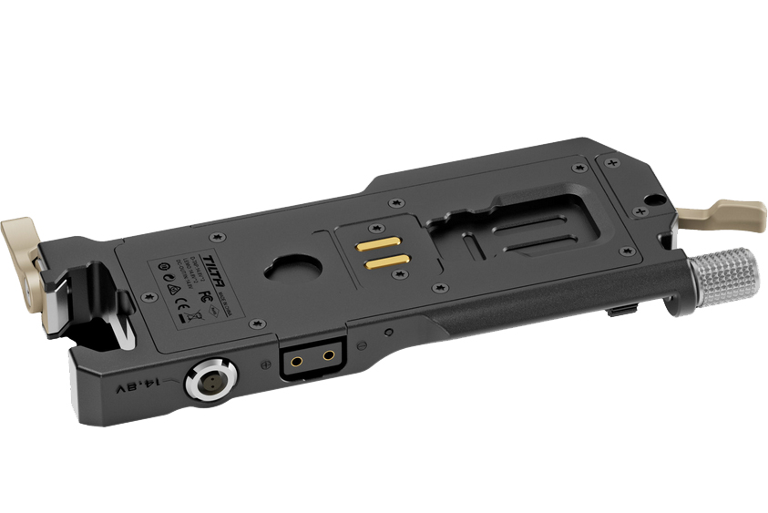 TILTA Battery Plate Power Pass-through Kit replaces the original sled of the DJI RS3 & RS3 Pro and offers expanded power options. Once you remove the original Ronin Plate by unlocking the height adjustment lever and sliding the plate off, the Power Pass-through Plate then slides on and locks in the same fashion.
