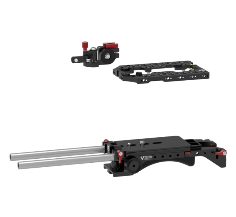 Essential kit for Sony Burano camera combines the popular Vocas USBP 15 MKII (0350-2200) base plate with the top plate (0350-1810), which is compatible with the Original Burano tophandle and the Sony FX9 tophandle and the swing away viefinder bracket (0700-0300). The top plate offers you multiple pin lock connection points on top of your camera for 1/4” and 3/8” accessories.