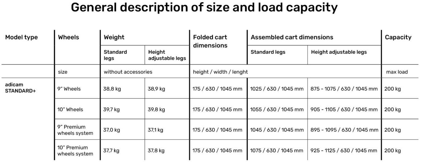 Assembly and disassembly takes only 2 minutes, no tools are needed and the entire cart as well as its individual parts can be folded into an easy to transport case.