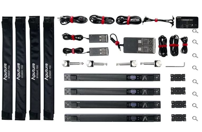 Kit consisting of four Aputure INFINIBAR PB6 RGBWW LED pixel bars.