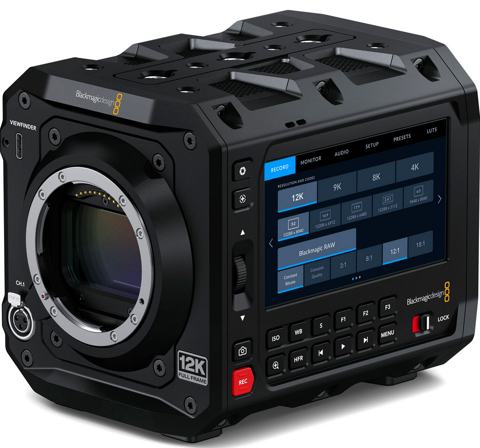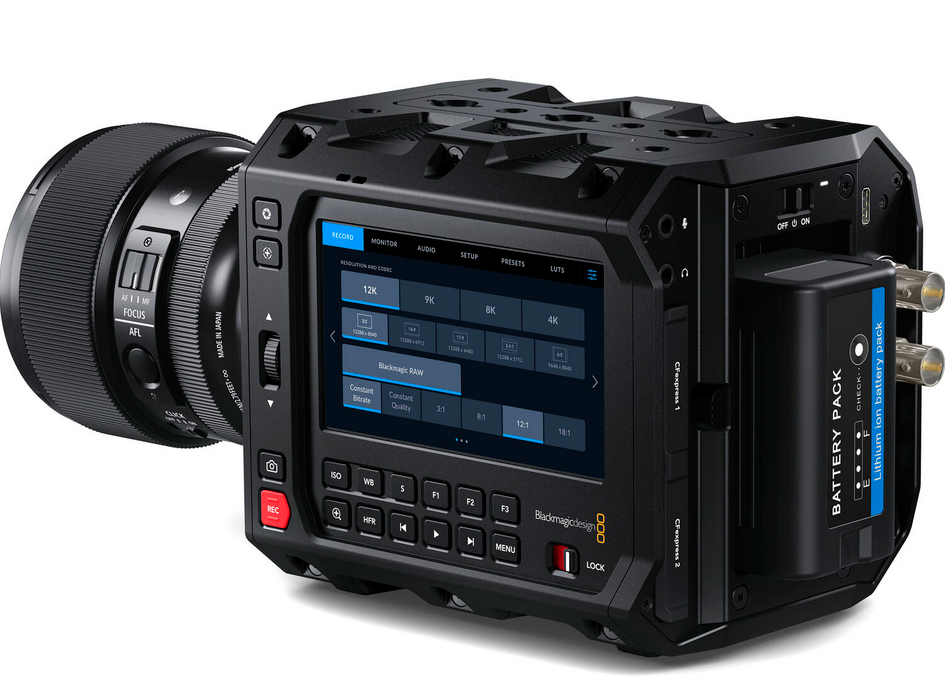 Blackmagic PYXIS 12K L-Mount is an advanced digital film camera with an incredibly versatile design that lets you build the perfect camera rig for your production. This new model features a 12,288 x 8040 full frame RGBW sensor with built in optical low pass filter, 16 stops of dynamic range, dual CFexpress media slots, all in a customizable body with flexible mounting options and side plates.