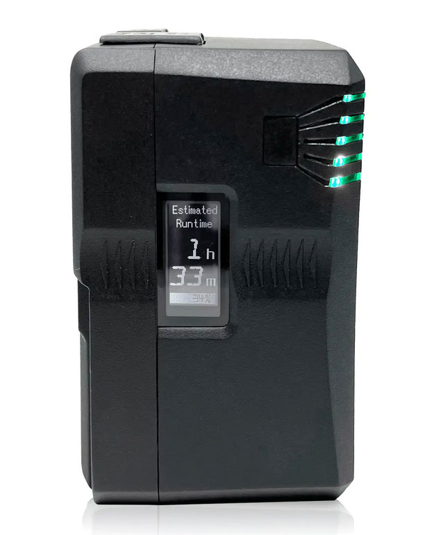 The addition of a wraparound RGB LED battery status gauge, encircling the pack and providing intuitive visual feedback. This feature not only offers clear and easy monitoring of battery status from any angle but also allows for quick differentiation between multiple packs, ensuring seamless workflow management on set.