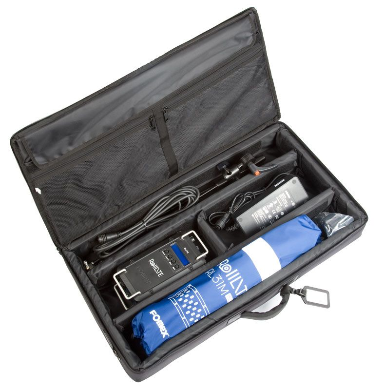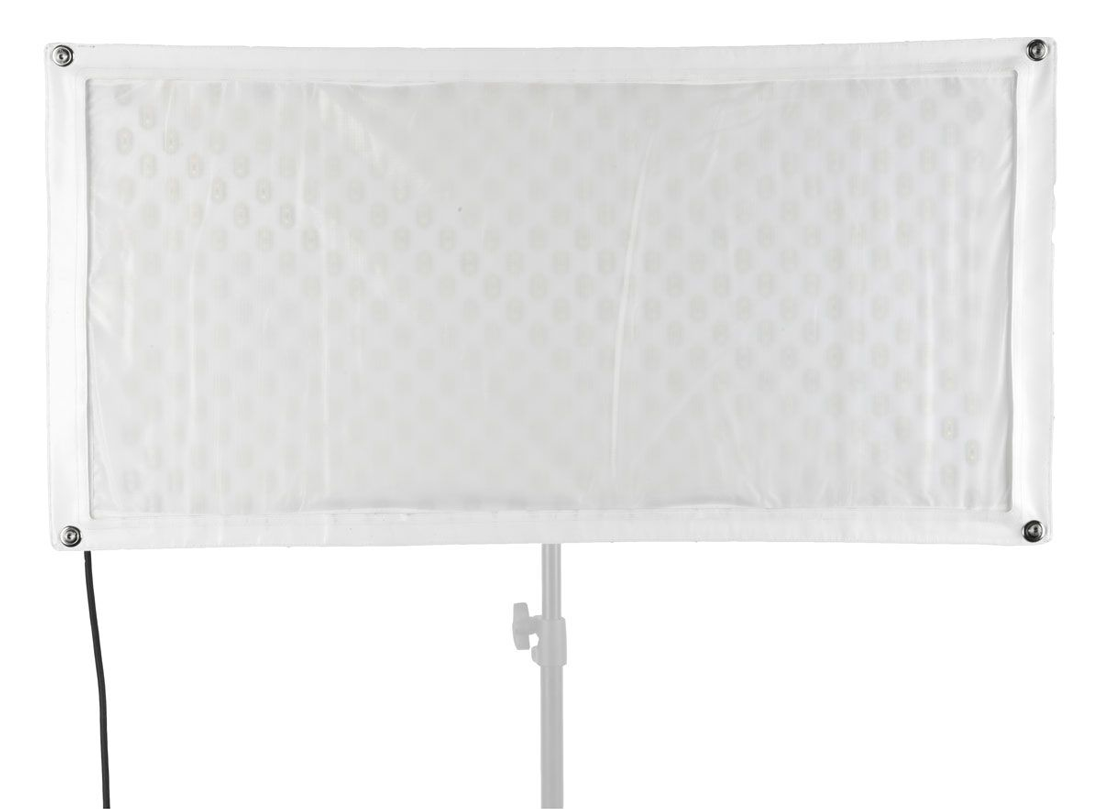 The RollLite can be folded, wrapped around objects, and tucked into small cavities (like boxes or glove compartments). It is stable enough to walk over, so even lighting from below is also possible. It can be stretched into an area light in a few easy steps via the included stand.