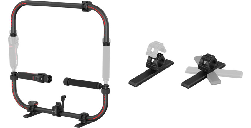 Various mounting options include 1/4"-20 and 3/8"-16 locating holes, along with two D-Tap ports for versatile accessory expansion. Additionally, a rotating base foot ensures stable placement during shooting breaks. The ergonomic right-side grip, crafted from lightweight carbon fiber, enhances comfort during extended use and complements DJI's design aesthetics.