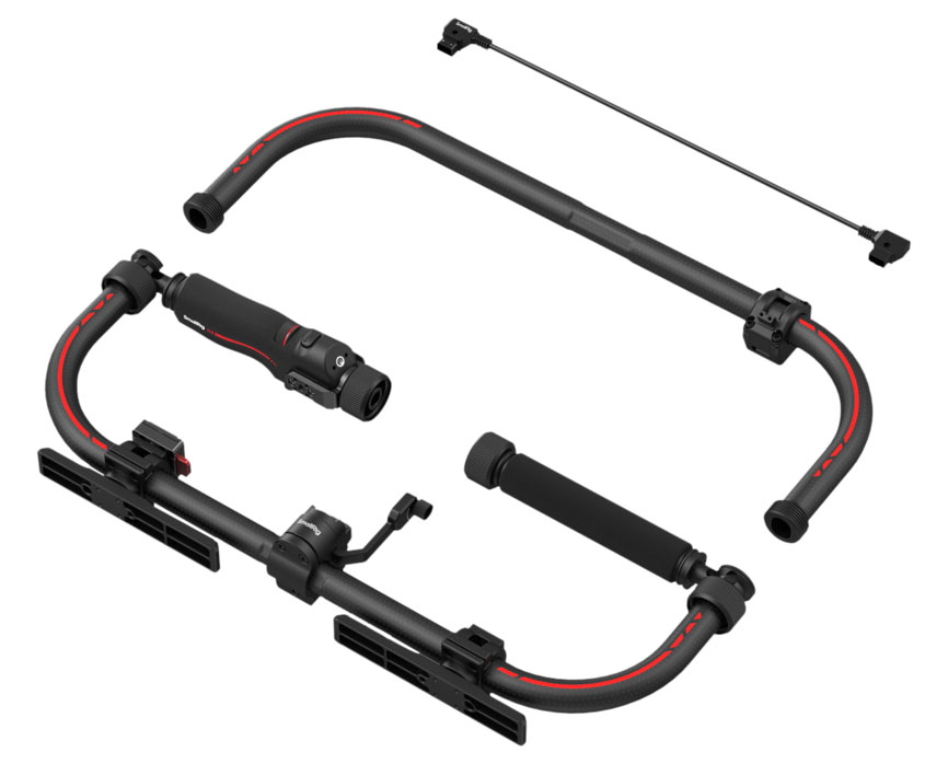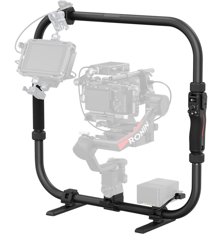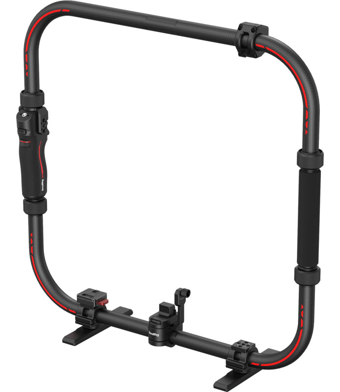 This handheld ring incorporates an internal quad-channel power system with streamlined cabling, enabling multiple devices - including the gimbal, monitors, transmitters, lights, and cameras - to operate from a single V-mount battery, significantly reducing onboard weight.Â