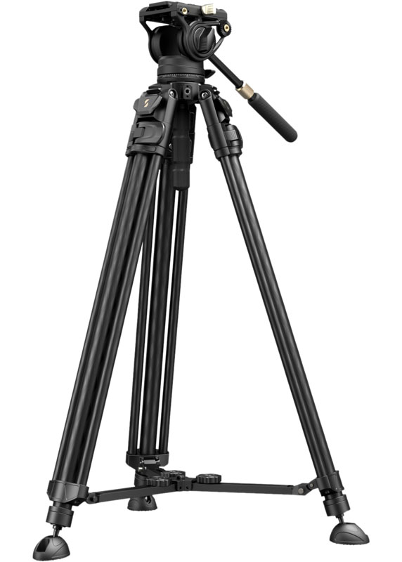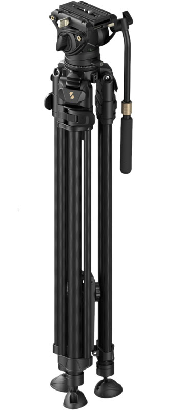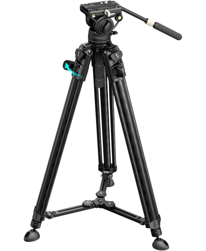 The tripod includes a quick release mid-level spreader, a compact fluid head, featuring a damping system, allows you to pan the camera smoothly. Designed for outdoor filmmakers. Featuring FreeSpeed technology, adopt a one-step locking system - operating a single toggle can lock two sections of legs quickly. Constructed with carbon fiber with lightweight design and delivering exceptional stability and high load-bearing capacity. Operating Altitude ranges from 35cm to 174cm, and a compact storage length of 84cm