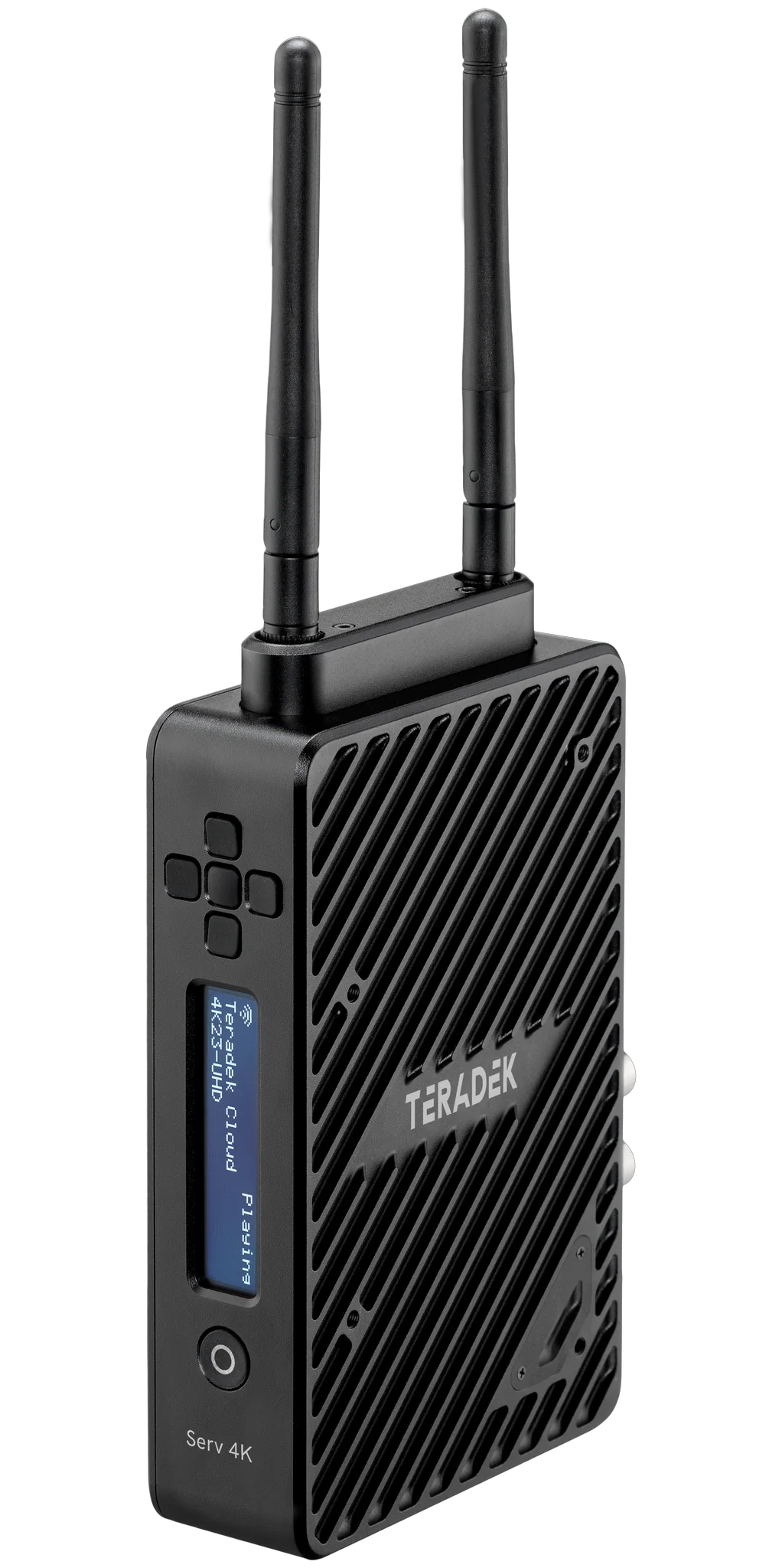 Serv 4K allows both local and cloud-based streaming with Teradek’s free VUER app (iOS and Android) and Multiple Core Cloud Platforms (MacOS, iOS, Android and Web Browsers) as well as third-party integrations like Frame.io. During Local Streaming, up to four live camera feeds can be streamed to multiple local devices at once, even without an internet connection. Cloud-based streaming can be shared with an unlimited number of devices via MacOS, iOS, Android, or web browsers. This next-gen hardware includes an updated fan for cooling efficiency, directional buttons for menu navigation and military-grade 256-bit encryption. Serv 4K (2024) continues to support up to 45mbps HEVC, 10bit 4:2:2 color, and DCI-P3 / PQ 2084 for consistent color-accuracy from first shot through final color.
