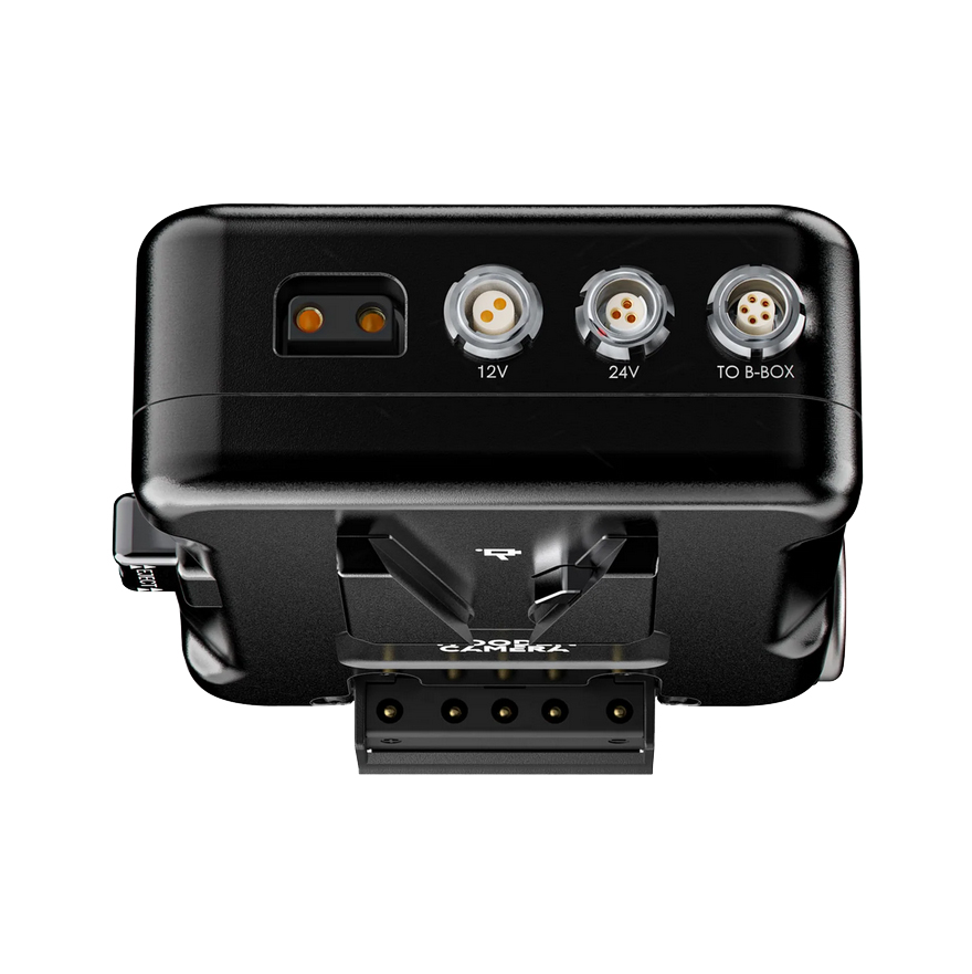 Add power accessory options on the Sony BURANO by adding the D-Box to your camera system, the D-Box provides additional 12V 2-pin, a D-tap port and a 3-pin 24V power options. The D-Box offers hot swap abilities when power is connected to the DC-In and an on-board battery. Choose from either a Gold Mount or V-Mount option.Â