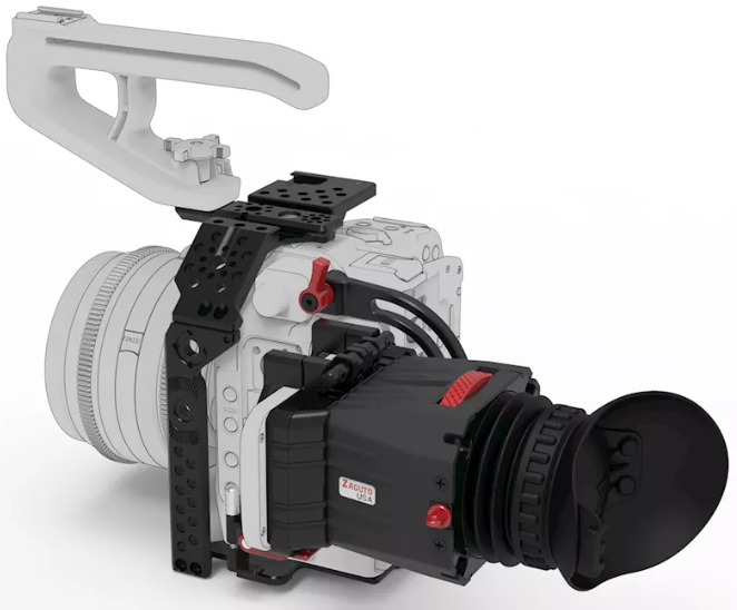 Canon C80 cage including Zacuto camera hand strap for a secure and comfortable grip, HDMI strain relief clamp and right angle HDMI adapter - Compatible with the ACT Baseplate.