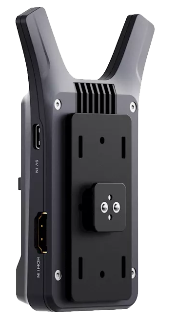 Sygnał jest przesyłany w paśmie 5 GHz na odległość do 500 stóp z niskim opóźnieniem wynoszącym około 60 ms. Alternatywnie, zacisk telefonu można odłączyć i zastąpić płytką mocującą gimbal kompatybilną z gimbalami DJI RS2/ RS3. Umożliwia to wygodne umieszczenie CineView Nano pod płytą montażową kamery, zapewniając optymalne wyważenie i łatwy dostęp.