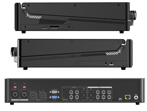 - Wyjścia - 2×HDMI PGM + 4×SDI PGM (konfigurowalne) + 1×HDMI multiview = Strumieniowanie i nagrywanie - Wbudowany RTMP + nagrywanie USB/SD
