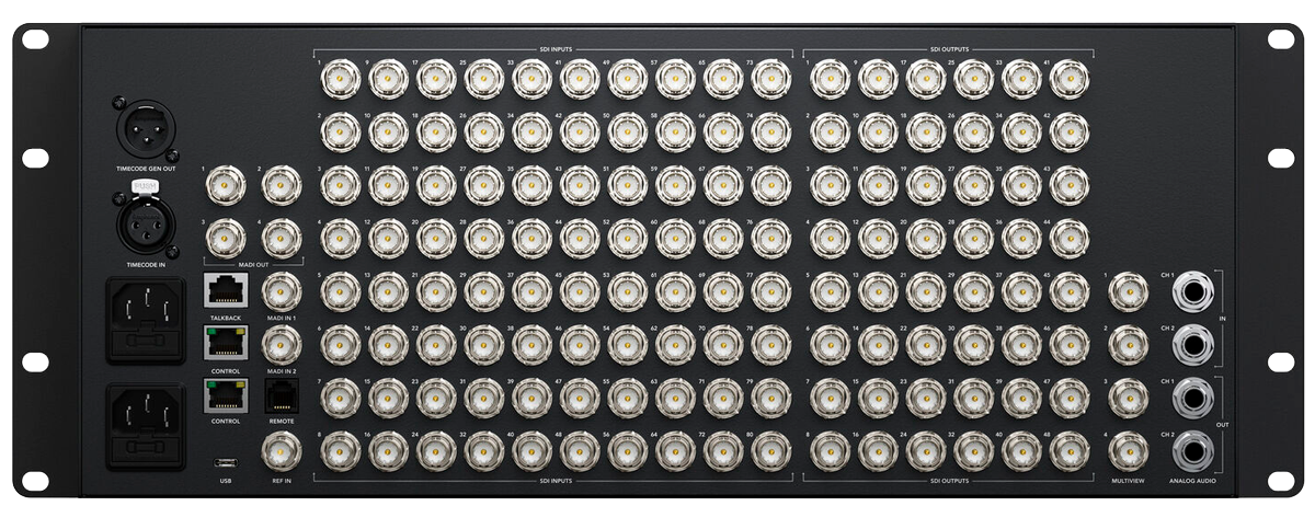 - Wyjścia wideo SDI: 52x 10-bit 720p, 1080i, 1080p, 2160p
