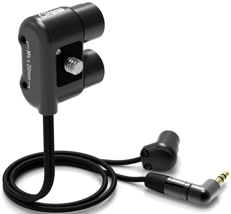 Mocowanie za pomocą śruby 1/4-20 i gumowej podkładki do korpusu kamery lub płyty bocznej (Blackmagic PYXIS). Dwa gwintowane otwory M4 w rozstawie 20 mm ARRI są dostępne w celu dodania bocznego wspornika montażowego Breakout Box (ARRI 3/8-16) (sprzedawany oddzielnie), który umożliwia przymocowanie AB-9 za pomocą śruby 3/8-16 z kołkami ustalającymi ARRI. Łatwe mocowanie do prętów za pomocą pojedynczego zacisku pręta 15 mm lub pojedynczego zacisku pręta 19 mm (sprzedawane oddzielnie). Kabel o długości 24 cm z niestandardowym niskoprofilowym złączem mini XLR i Neutrik 3,5 mm TRS
