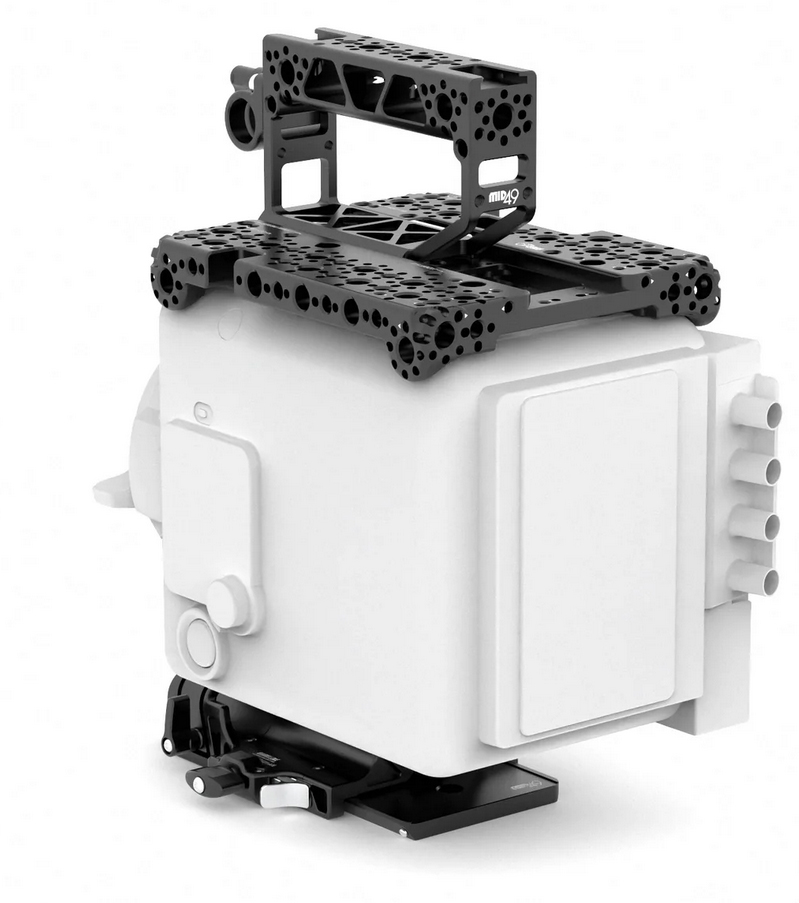 - Top Plate (Sony Burano) mocowany do górnej części kamery, posiada otwory gwintowane 1/4-20 i 3/8-16 z trzpieniami ARRI accessory pins, standardowe otwory gwintowane ARRI M4x20mm oraz środkowy interfejs ARCA clamp do mocowania uchwytu górnego ARCA Top Handle i płyt montażowych gimbala