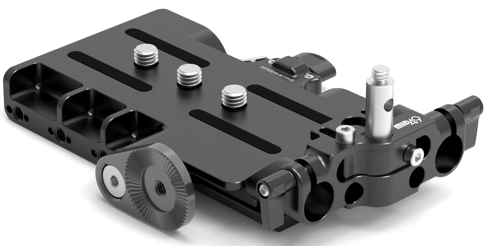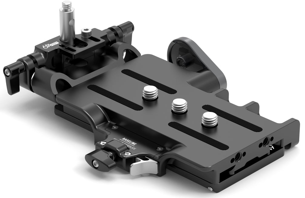 Baseline 15mm LW (FUJIFILM GFX ETERNA) to płyta bazowa, która utrzymuje lekkie pręty 15 mm w odpowiedniej odległości od środka obiektywu i mocuje się do spodu kamery za pomocą trzech śrub 3/8-16. Środek wspornika LW 15mm ma pionowy wspornik 1/4-20, który może być używany do obsługi adapterów obiektywów, takich jak Metabones itp.