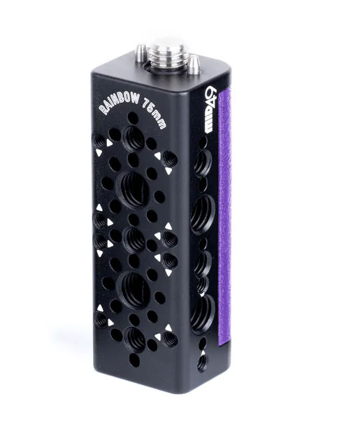 Przedłużenie uchwytu Rainbow(75 mm) mocuje się do dowolnego standardowego uchwytu ARRI 3/8-16 z kołkami ustalającymi, takiego jak Rainbow Handle lub ARCA Top Handle, i zapewnia gumowany uchwyt w różnych kolorach. Otwory gwintowane 1/4-20 i 3/8-16 z kołkami ustalającymi ARRI i otworami M4x20mm w wielu miejscach. Uchwyty Rainbow Handle są wymienne i świetnie nadają się do kodowania kolorami ujęć z wielu kamer.