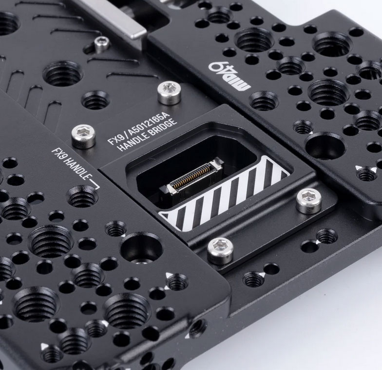 Adapter uchwytu płytki górnej (Sony Burano do FX9) wypełnia lukę między korpusem kamery a uchwytem FX9 podczas korzystania z płytki górnej (Sony Burano). Montuje się go za pomocą 4 śrub M3 w oznaczonym miejscu na górnej płytce. Wszystkie sygnały przechodzą bez modyfikacji, dzięki czemu wszystkie funkcje uchwytu FX9 są zachowane.