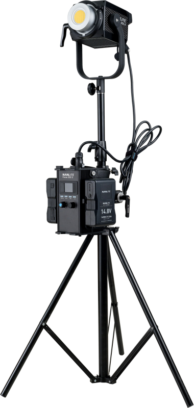 Oprócz zasilania AC, Forza 300 II oferuje również wiele opcji zasilania bateryjnego, dzięki czemu twórcy mogą z łatwością radzić sobie z różnymi scenariuszami oświetleniowymi. Wszystkie urządzenia obsługują wymianę AC/DC bez martwienia się o wyłączenie w środku. Co więcej, NANLITE Forza 300 II obsługuje również zasilanie pojedynczą baterią i przełączanie na gorąco, gdy intensywność jest mniejsza niż 45%, co oznacza, że użytkownicy mogą szybko przełączać baterię przy niskim poziomie baterii w celu ciągłego filmowania.