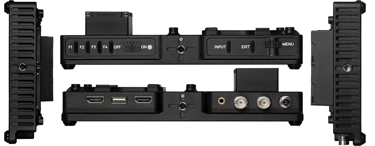 - Profesjonalne narzędzia do monitorowania: Waveform, Histogram, Zebra, Peaking, False Color, Anamorphic image de-squeeze, Audio Meters