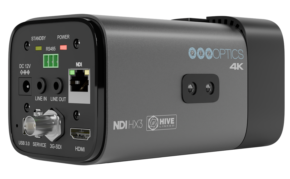 PTZOptics Studio 4K zapewnia krystalicznie czystą rozdzielczość 4K, 12-krotny lub 20-krotny zoom i wygodnie łączy się z naszą łatwą w użyciu platformą internetową Hive Studio, zapewniając gotową na przyszłość łączność i sterowanie z dowolnego miejsca.