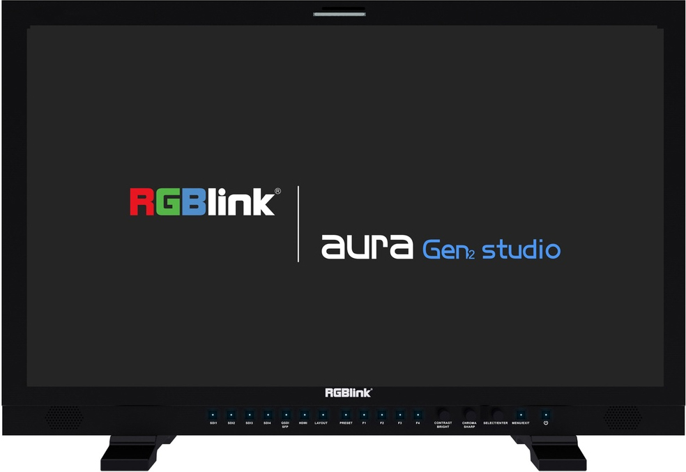 Kolejna generacja monitorów RGBlink aura UHD przynosi ze sobą nowy model, aura UHD studio, z możliwością bezpośredniego połączenia z aplikacjami takimi jak Adobe PremierPro i DiVinci Resolve za pośrednictwem portu Thunderbolt. Ten monitor do broadcastu/gradingu 4K HDR, wyposażony w ekran UHD (3840×2160), obsługuje sygnał quad link 12G SDI do 8K wstecznie kompatybilny z 4K@60Hz, wysoce precyzyjny 3DLUT z algorytmem interpolacji tetrahedralnej, formaty HDR takie jak SMPTE ST2084(PQ), hybridlog-gamma HLG, różne krzywe Gamma, camera Log i inne profesjonalne funkcje, które są szeroko stosowane w branży filmowej, telewizyjnej i reklamowej.