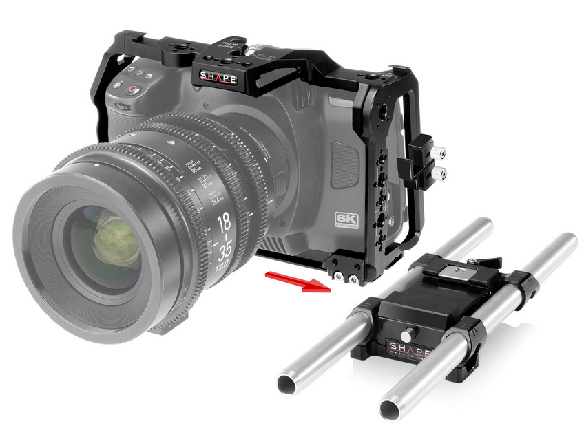 - Klatkę SHAPE do kamery Blackmagic Cinema Camera 6K/6K Pro/6K G2 z górnym uchwytem i systemem prętów LWS 15 mm. (BM6KROD)