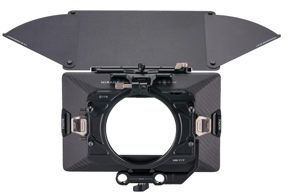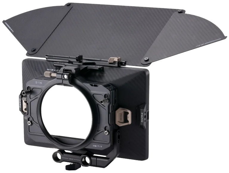 Mirage Pro Matte Box to nasza kolejna generacja lekkich matte boxów, które zostały zaprojektowane tak, aby były dostępne zarówno dla początkujących, jak i doświadczonych profesjonalistów. Wykonany z dbałością o szczegóły, Mirage Pro to zaciskany matte box zaprojektowany tak, aby pomieścić różne rozmiary obiektywów, obsługujący obiektywy o średnicach zewnętrznych 95 mm, 110 mm, 114 mm i 134 mm, a także obiektywy fotograficzne z następującymi adapterami gwintów filtrów: 67mm, 72mm, 77mm, 82mm.