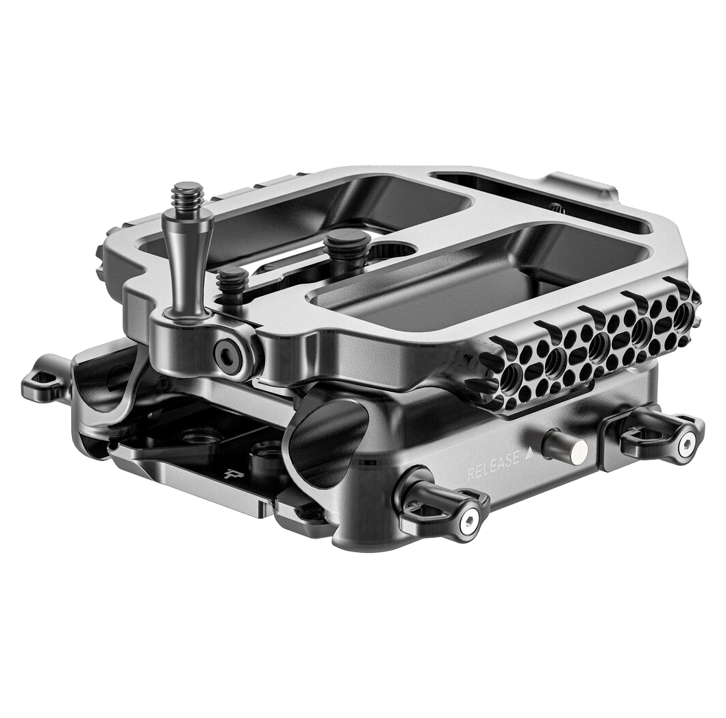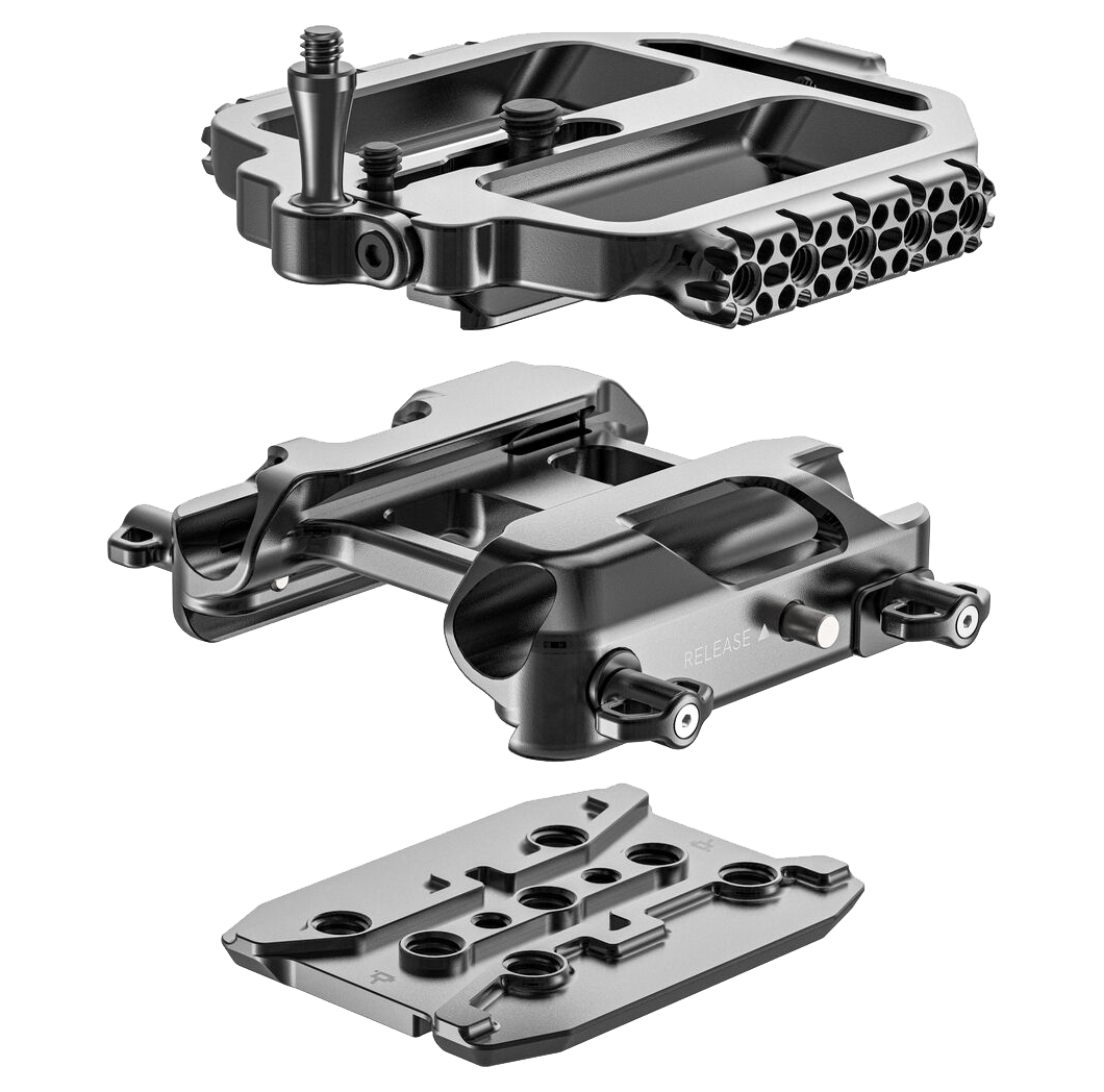 System płytki bazowej obejmuje płytkę bazową ARCA i płytkę ARCA Riser, które ustawiają kamerę na odpowiedniej wysokości optycznej do montażu akcesoriów i umożliwiają szybkie zmiany konfiguracji.