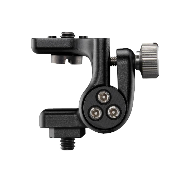 Uchylny zawias Tilting hinge do montażu monitorów na kamerze Canon EOS C70. Zaprojektowany z kątem nachylenia 180 stopni dla zmiany kąta widzenia. Dolne mocowanie ma zazębiające się grzbiety ze zintegrowaną śrubą 1/4"-20 do kompatybilnego montażu z dowolnym standardowym mocowaniem akcesoriów Canon, w tym gorącą stopką Canon C70, górnym uchwytem (Canon C70) i górną płytką (Canon C70). Górne mocowanie jest wyposażone w śrubę 1/4"-20 ze standardowymi locating pins dla monitorów SmallHD i zawiera dodatkową gumową podkładkę do mocowania monitorów innych firm. Zawias ten został specjalnie zaprojektowany tak, aby idealnie pasował do otworów w każdym z monitorów SmallHD Smart 5.