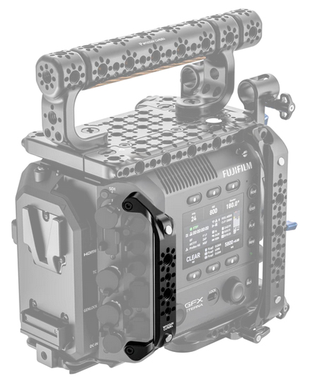 Ta tylna szyna boczna jest mocowana bezpośrednio do tylnych punktów montażowych na korpusie aparatu po zdjęciu wspornika zabezpieczającego złącze aparatu. Cztery punkty montażowe zapewniają bezpieczne połączenie z korpusem kamery i chronią porty kamery. Szyna zawiera punkty montażowe 3/8"-16 i 1/4"-20, a także szynę NATO na całej długości, umożliwiając podłączenie szerokiej gamy akcesoriów.