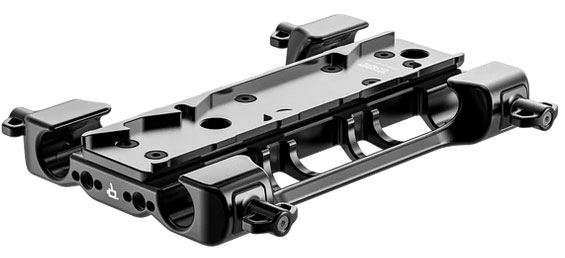 Dwie śruby 3/8"-16 umożliwiają przymocowanie płytki do spodu kamery, a dwa bolce wbudowane w płytkę bazową zapobiegają skręcaniu się płytki pionowej, zapewniając bezpieczniejsze połączenie. Cztery zaciski prętowe - po dwa po obu stronach płyty pionowej - zapewniają silne tarcie, aby zapobiec momentowi obrotowemu i obrotowi silników obiektywu. Riser Plate ułatwia otwartą konstrukcję, umożliwiając wydajny przepływ powietrza do kamery.